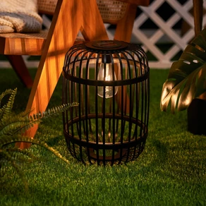 LED-Solar-Dekoleuchte Korb, 34 cm, schwarz/natur