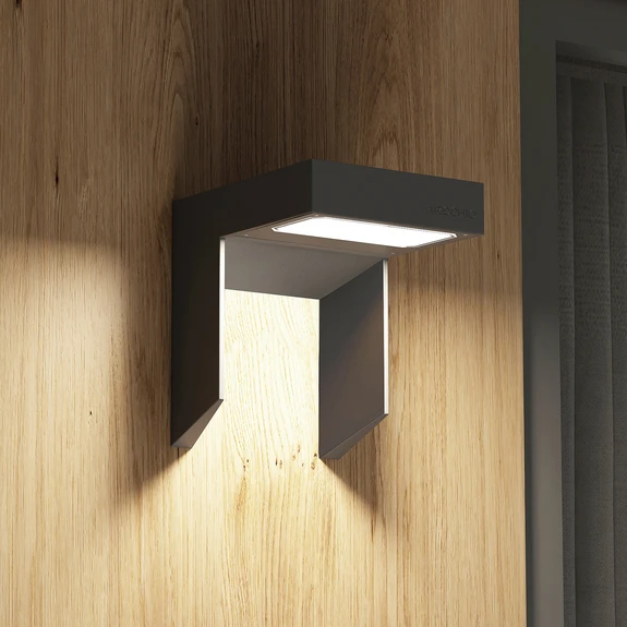 Dynorma ist eine modern und kantig gestaltete LED-Außenwandleuchte aus Aluminiumdruckguss, die in dunklem Grafit gestaltet und mit energieeffizienter LED-Technik ausgestattet ist. Ihr Design zeichnet sich durch Exklusivität aus und wirkt besonders stilvoll. Die warmweißen LEDs strahlen durch einen Glasdiffusor in weitem Winkel nach unten ab und erhellen einen weiten Bereich unterhalb der Leuchte. Perfekt ist die Außenwandleuchte zur Beleuchtung von Eingangsbereichen.