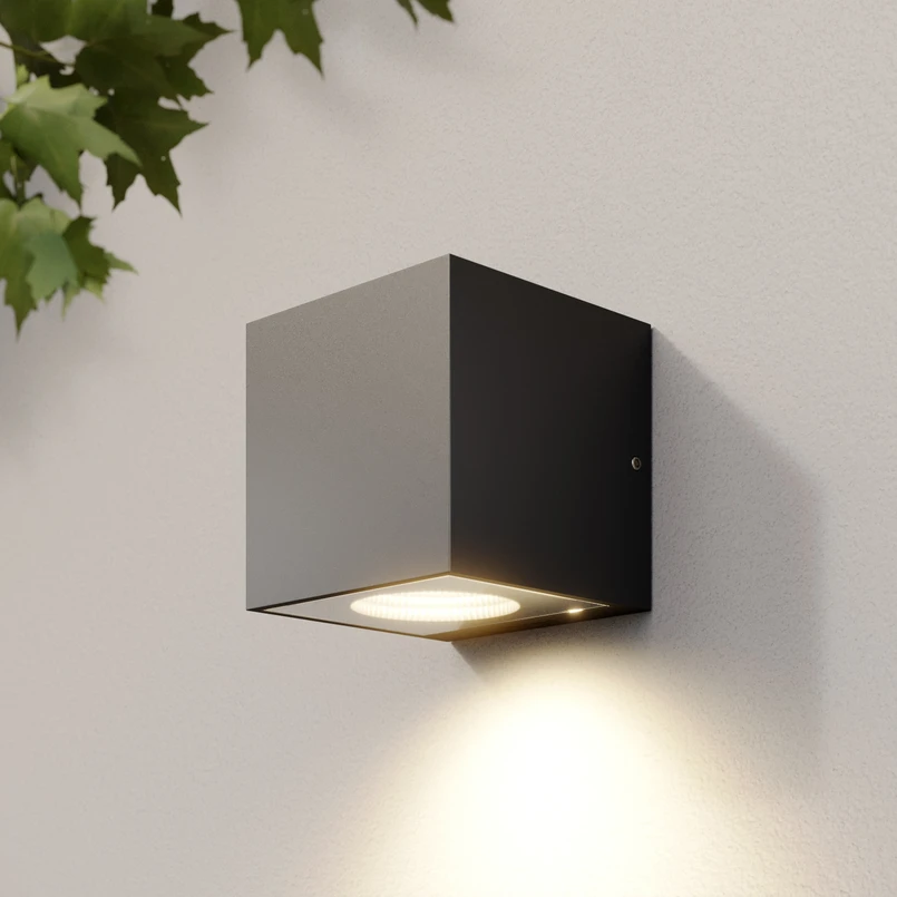 LED-Außenwandleuchte Tassnim mit Würfeloptik in Grafit