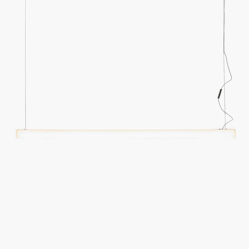 Mit der LED-Hängeleuchte Alphabet of light linear präsentiert sich ein Teil einer LED-Leuchten-Serie, die aus Lichtelementen in Buchstaben- oder Zahlenform sowie kreisrunder oder linearer Form besteht. Alle Lichtelemente können miteinander kombiniert werden und auch via Bluetooth und mittels der kostenlosen Artemide-App für Tablet und Smartphone gesteuert werden. Es entstehen ganz auf den Bedarf abgestimmte Lichtbilder für den privaten oder gewerblichen Gebrauch. Alphabet of light linear strahlt über die gesamte Länge ein diffuses Licht aus, das sich durch Blendfreiheit sowie eine sehr behagliche Note auszeichnet.