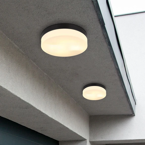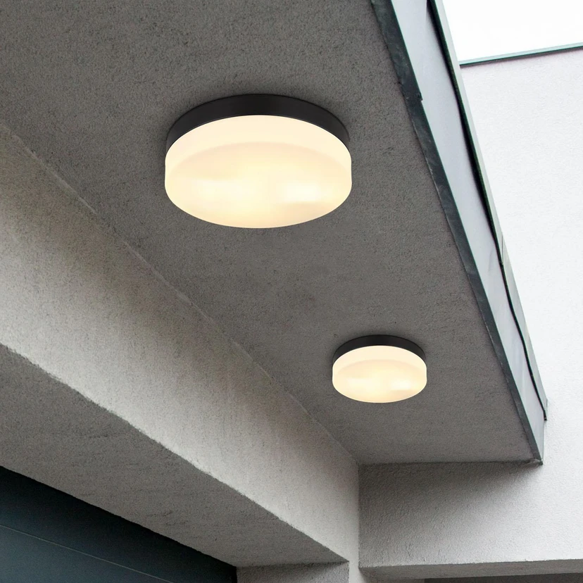 Außen-Deckenleuchte Vranos, schwarz matt, Ø 24 cm, Alu