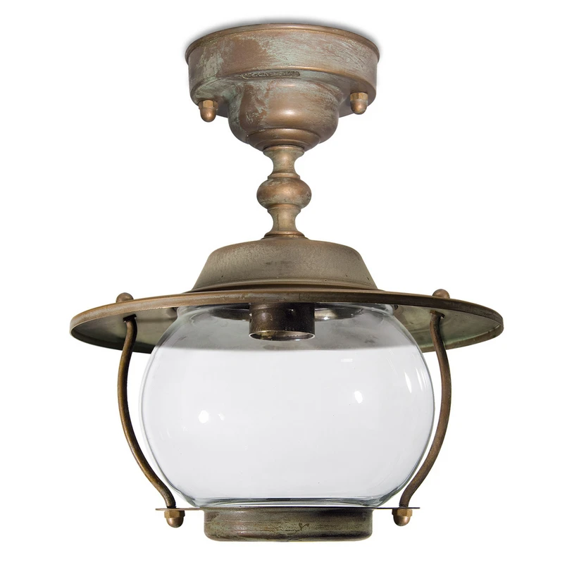 Pergola ist eine beeindruckend schöne Außendeckenleuchte zur optischen Aufhellung der Außenbereiche. Herrliche Effekte werden durch klares, edles Glas in einzigartiger Verbindung mit einem robusten, kupfernen Gestell erzielt. Die Lichtstreuung konzentriert sich auf die seitlichen Bereiche.