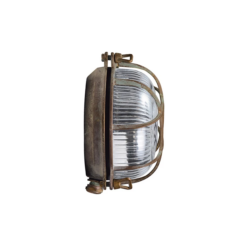 Seewasserfeste Außenwandleuchte Tortuga aus Messing mit antikem Finish und Glas