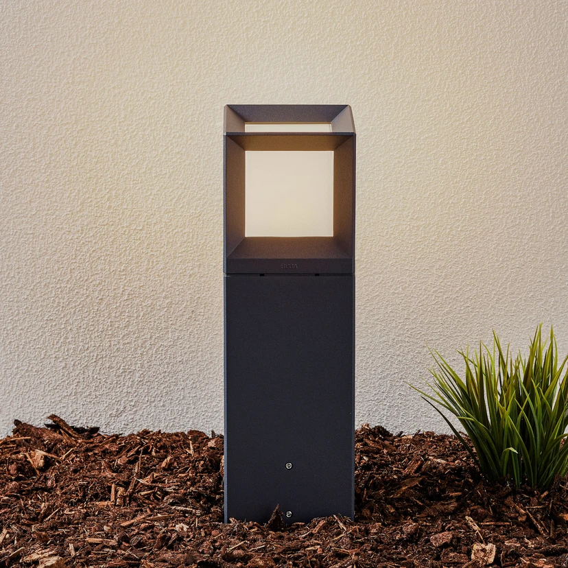 Die LED-Sockelleuchte 84604 aus dem Hause BEGA steht für hochwertige Beleuchtung im Außenbereich. Mit ihrem quadratischen Grundriss und dem nach allen vier Seiten lichtdurchlässigen Leuchtenkopf liefert die Leuchte nicht nur optisch ein modernes Bild ab, sondern überzeugt auch mit ihrem allseitig strahlenden Licht. Dadurch kann sie in vielen Beleuchtungssituationen eingesetzt werden, z. B. an Wegen, auf Terrassen oder im Eingangsbereich. Mittels eines Erdstücks (inklusive) aus feuerverzinktem Stahl wird die Leuchte im Boden verankert.