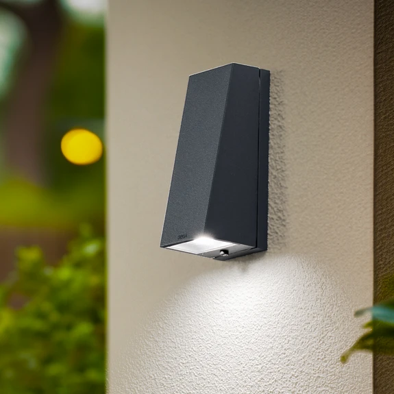 Diese LED-Außenwandleuchte mit nach unten gerichteter Lichtabstrahlung eignet sich aufgrund ihrer Abmessungen besonders gut für die Montage an Säulen und Stirnflächen von Mauern. Die Leuchte besteht aus Aluminiumguss, Aluminium und Edelstahl und wurde mit einer besonderen Beschichtungstechnologie (BEGA Unidure®) veredelt. Durch die ausschließliche Lichtabgabe nach unten leistet die Leuchte einen Beitrag zur Vermeidung von Lichtverschmutzung (Dark Sky).