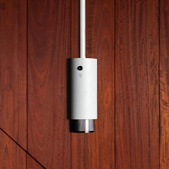 Die Pendelleuchte Exhaust eignet sich ideal zur fokussierten Beleuchtung. Einzeln über einem kleinen Beistelltisch oder zu mehreren über einer Theke oder einem großen Tisch angebracht, strahlt sie ihr Licht durch den integrierten Wabenfilter blendfrei und präzise nach unten ab. Der zylindrische Korpus der Leuchte ist aus pulverbeschichtetem Edelstahl gefertigt und wird von einem nach oben ragenden Rohr, dem Kabel und einem runden Baldachin gehalten. Der Lichtauslass ist von einem nach unten heraus ragenden Einsatz umrahmt. Dieser begrenzt den Ausstrahlwinkel und verleiht der Leuchte durch seine gerillte Oberfläche eine besondere Raffinesse. Die GU10-Fassung im Einsatz kann mit einer LED-Lampe bis 9 W bestückt werden (nicht enthalten).