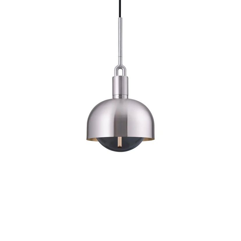Hängeleuchte Forked mit Stahlschirm und Rauchglaskugel