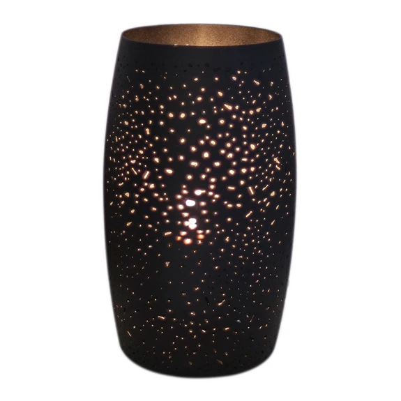Colby sorgt für stimmungsvolles, gemütliches Licht in jedem Raum durch die ins Metall eingestanzten Löcher, die das Licht durchschimmern lassen. Die Leuchte ist eher schlicht und leicht bauchig geformt und besticht mit ihrem Sandfinisch in Schwarz. Das Leuchtmittel für die E27-Fassung kann selbst gewählt werden. Colby setzt stimmungsvolle Lichtakzente in Flur- und Wohnbereichen.