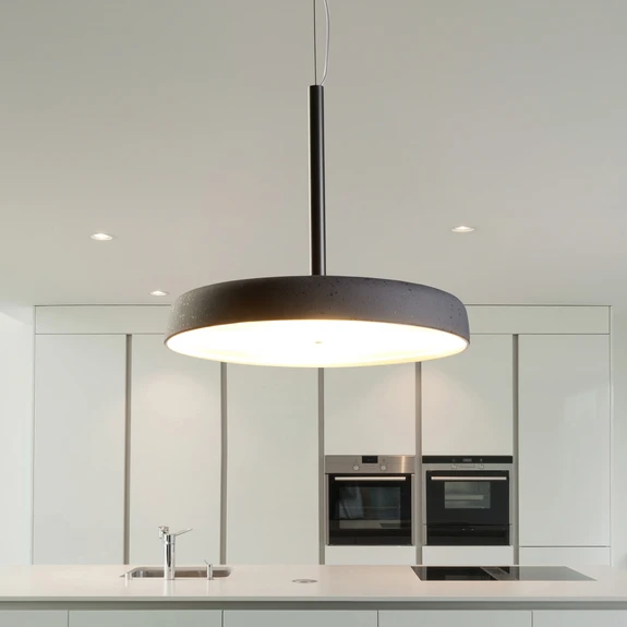 Clavio Flat besticht durch ein skandinavisch-minimalistisches Design und die außergewöhnliche Lava-Oberfläche des Schirms aus Keramik.