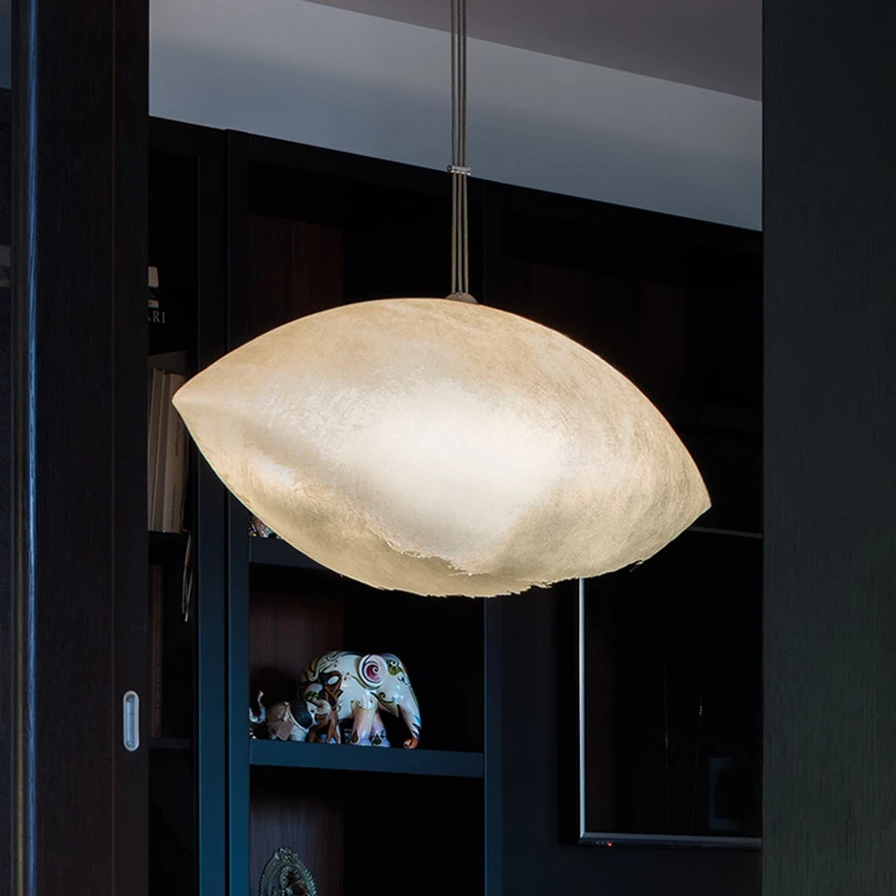 Das Zusammenspiel von Licht und diesem Fiberglas lässt einzigartige Schatteneffekte entstehen, die diese Leuchte zu etwas Besonderem machen. Optisch überzeugt PostKrisi durch den naturbelassenen Leuchtenschirm und seine faszinierende Form, die mit kaum etwas zu vergleichen ist.