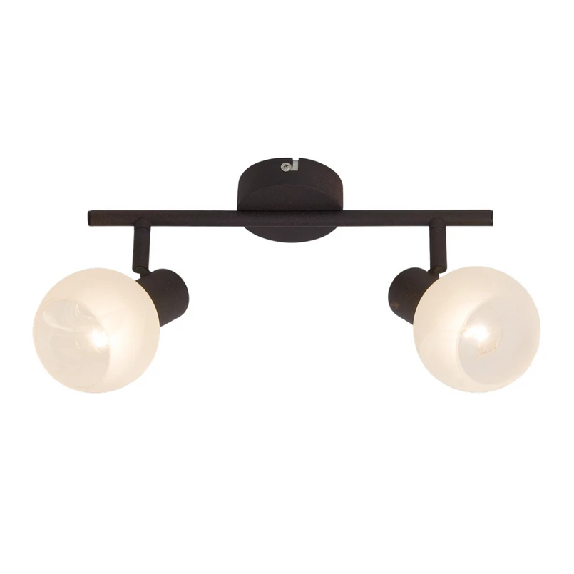 Diese Leuchte besitzt 2 Schirme aus alabasterfarbenem Glas, sowie ein Gestell aus bräunlichem Metall - ein überaus elegantes Design. Die einzelnen Leuchtkörper sind unabhängig voneinander schwenkbar und erlauben es, das Licht punktgenau zu steuern.