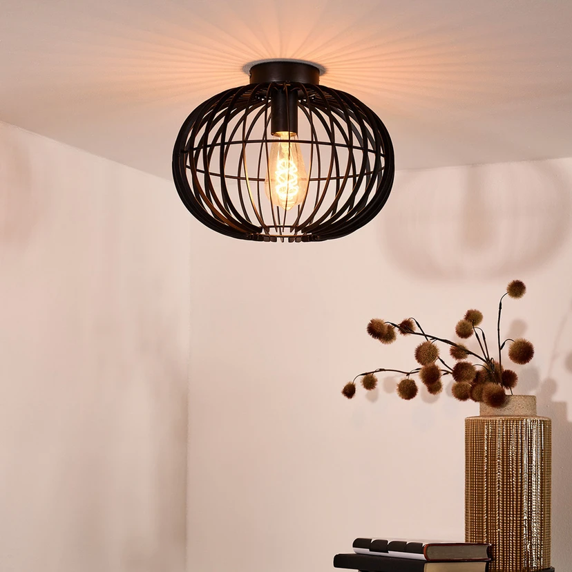 Reda verfügt über viele Facetten, was in verschiedenen Räumen und aus verschiedenen Perspektiven erst richtig deutlich wird. Die schwarzen Metallbügel formen fließend einen runden Lampenschirm um den zentralen Lichtpunkt, der von dem eingesetzten E27-Leuchtmittel ausgeht. Aufgrund der eher schmalen Ausführung wird diese Deckenleuchte zu einem grazilen Accessoire moderner Wohnstile. Sie kann jedoch auch zur Akzentsetzung in anderen Stilen verwendet werden.
