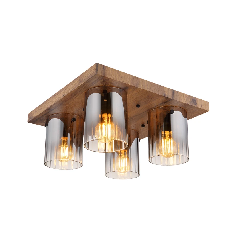 Die Deckenleuchte Underwood vereint die Materialien Glas und MDF in einem harmonischen Design, das jedem Raum eine besondere Note verleiht. Die Kombination aus rauchgrauen Gläsern und dunklem MDF-Holz sorgt für eine warme und einladende Atmosphäre, die sich ideal für Wohnzimmer, Esszimmer und Küche eignet. Diese Leuchte ist nicht nur ein Blickfang, sondern auch ein funktionales Element, das die Raumgestaltung aufwertet.