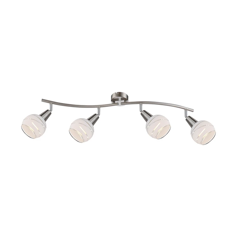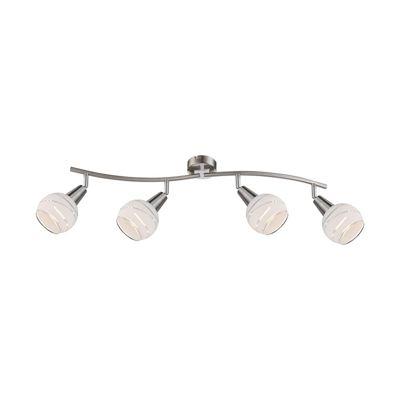 Der schöne Deckenstrahler Elliott mit ihren vier Glasschirmen besticht durch ein dezentes, elegantes Design. Das Glas ist satiniert und durchzogen von Linien aus klarem Glas. Das warmweiße Licht der vier mitgelieferten LED-Leuchtmittel mit E14-Sockel sorgt für eine angenehme Raumstimmung.