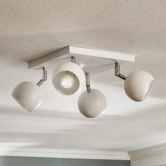 Der Deckenstrahler Flame, weiß, vierflammig Quadrat, vereint modernes Design mit funktionaler Flexibilität. Gefertigt aus hochwertigem Stahl, fügt sich dieser Strahler nahtlos in verschiedene Wohnbereiche wie Wohnzimmer, Flurbereich, Schlafzimmer und Esszimmer ein. Die klare, weiße Farbgebung unterstreicht die zeitlose Eleganz und sorgt für eine harmonische Integration in unterschiedliche Einrichtungsstile.