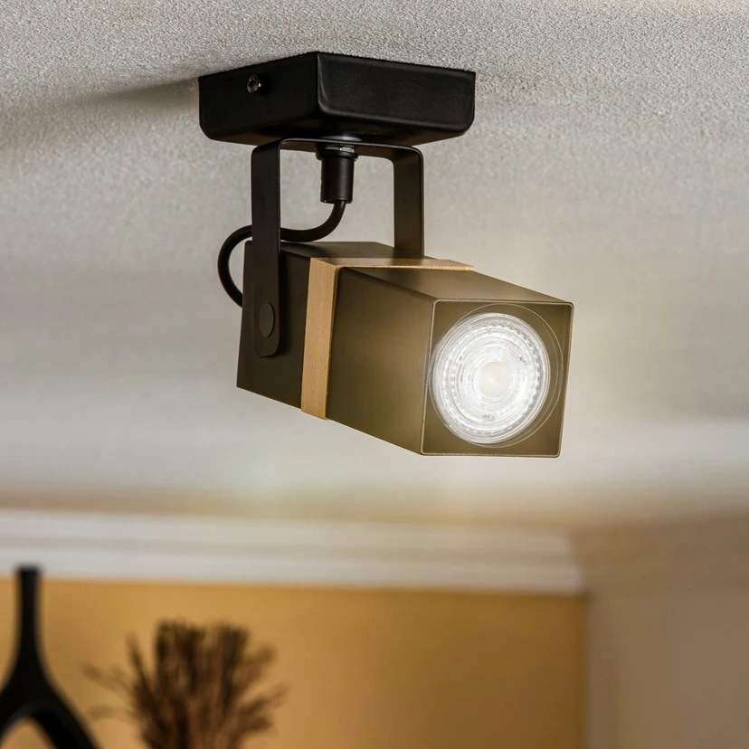 Der Deckenstrahler Vidar vereint modernes Design mit hochwertigen Materialien und bietet eine stilvolle Beleuchtungslösung für verschiedene Wohnbereiche. Gefertigt aus einer harmonischen Kombination von Metall und dunklem Holz, fügt sich dieser einflammige Strahler nahtlos in zeitgenössische Einrichtungsstile ein. Die schwarze Farbgebung in Verbindung mit den Holzelementen verleiht dem Strahler eine elegante und zugleich warme Ausstrahlung, die sowohl im Wohnzimmer als auch in der Küche, im Flurbereich oder im Esszimmer Akzente setzt.