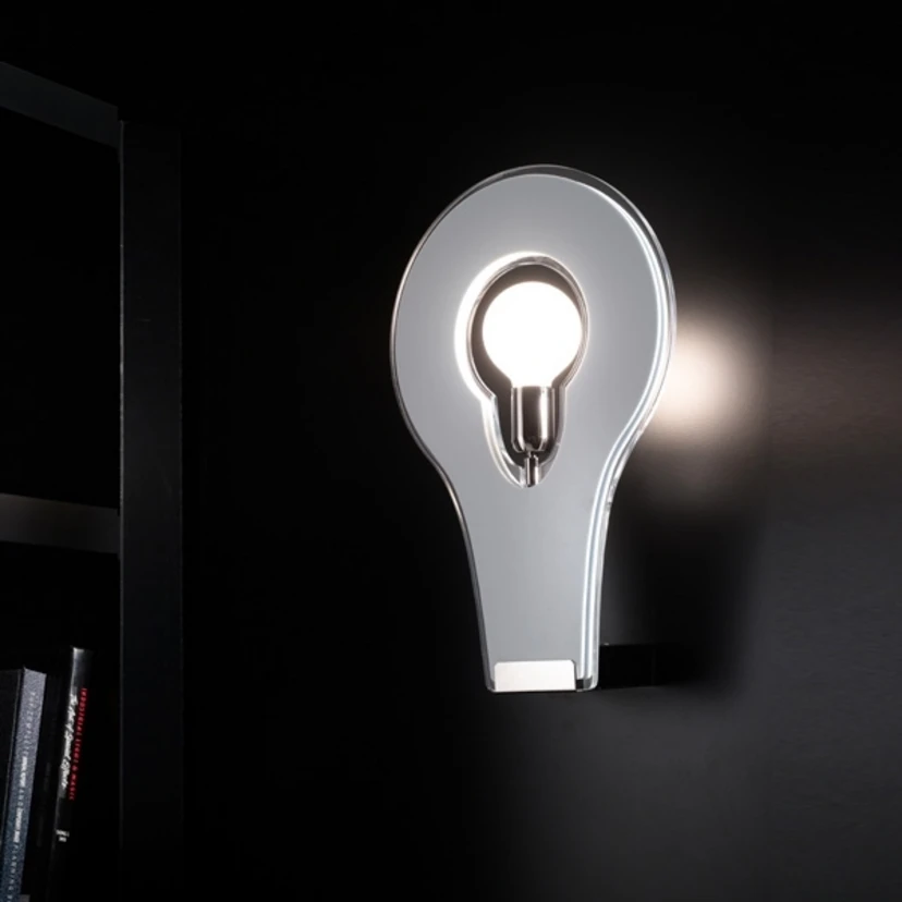 Auch bei dieser Wandleuchte Flat heißt es: Nomen est Omen. Daher wurde diese Leuchte durchaus flach konzipiert und hergestellt, wobei hauptsächlich die Materialien Metall und Plexiglas eine Verwendung fanden. Die Leuchte in Birnenform besteht aus zwei Platten in orange, weiß oder schwarz und einer mittleren, transparenten Kunsstoffplatte, wodurch eine einzigartige Optik entsteht. Wandhalterung und Fassung sind in Chrom gehalten. Diese Wandleuchte ist das perfekte Highlight im trendigen Einrichtungsstil.