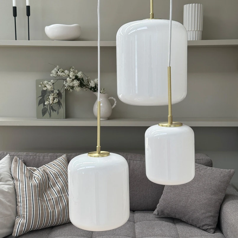 Pendelleuchte Silvia mit Glasschirm Silvia: Eleganz in Opal und Messing
