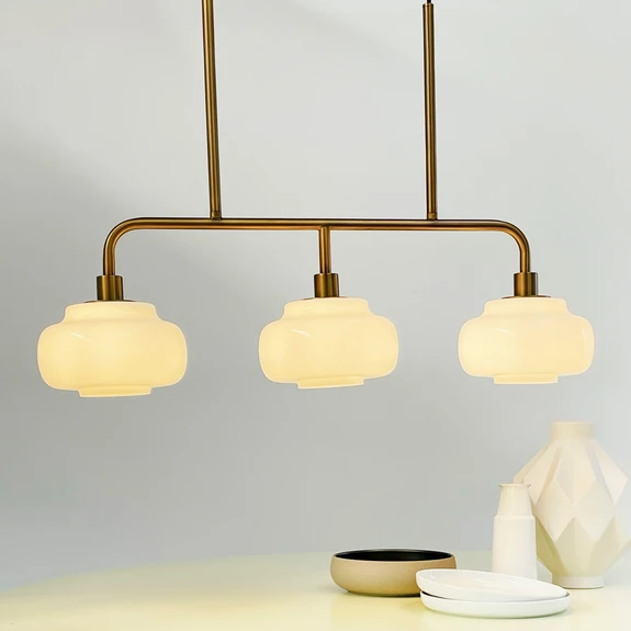 Dreiflammige Pendellampe Ossett mit opalen Glasschirmen