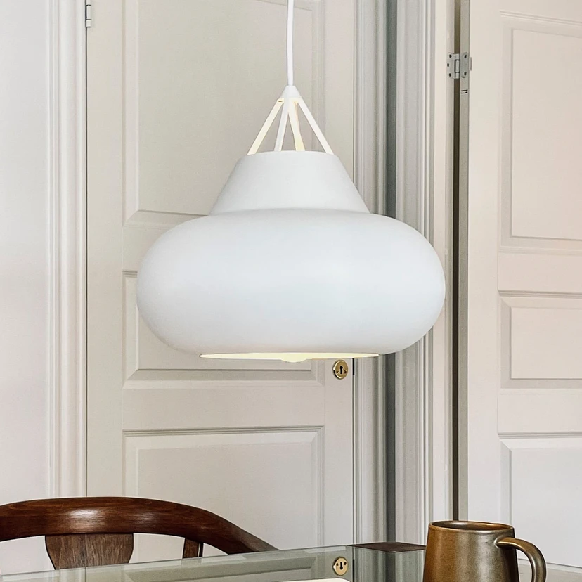 Dyberg Larsen Pendellampe Polo, weiß, Ø 29 cm, Metall