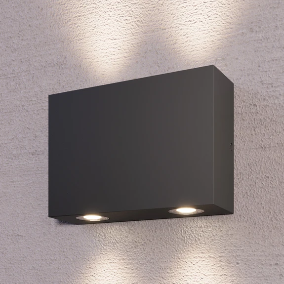LED-betriebene Außenwandleuchte Henor mit 4 Lichtquellen, nach oben und unten strahlend