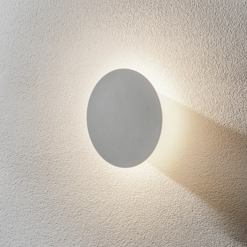Der Hersteller Escale bietet mit der LED-Wandleuchte Blade einen angenehmen Lichtspender für modern eingerichtete Innenräume an. Die Lichtabstrahlung erfolgt ausschließlich indirekt. Die warmweißen LEDs sind raumseitig vollständig abgeschirmt; ihr Licht wird nach hinten emittiert bzw. dorthin reflektiert, sodass an der Wand eine diffuse Lichtcorona entsteht. Die Optik der Wandleuchte selbst wird von der Abdeckung bestimmt, die als flache, kreisförmige Scheibe aus matt-weißem Aluminium gestaltet ist und die gesamte Vorderseite der Wandleuchte einnimmt.