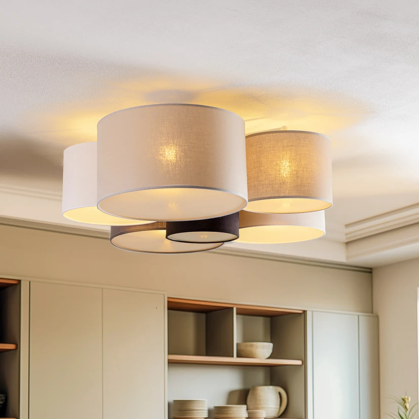 Die Euluna Lodge Deckenleuchte, 6-flammig und in lebendigem Multicolour-Design, vereint stilvolle Eleganz mit funktionaler Beleuchtung. Gefertigt aus hochwertigen Materialien wie Textil, Folie und Metall, setzt diese Leuchte in jedem Raum moderne Akzente. Ob im Wohnzimmer, Flurbereich, Schlafzimmer oder Esszimmer – die vielseitige Farbgebung sorgt für eine inspirierende Atmosphäre und macht die Leuchte zu einem Blickfang in jeder Umgebung.