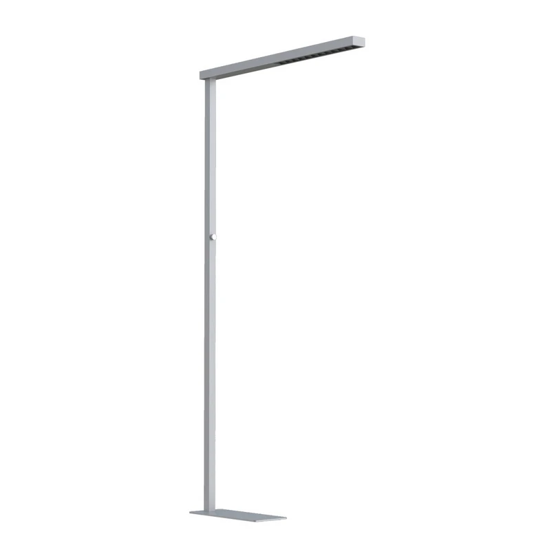 Die LED-Stehleuchte Officium ist für einen sicheren Stand mit einer Grundplatte aus Stahl bestückt, die besonders flach gearbeitet ist, damit sie an den Büromöbeln platzsparend positioniert werden kann.