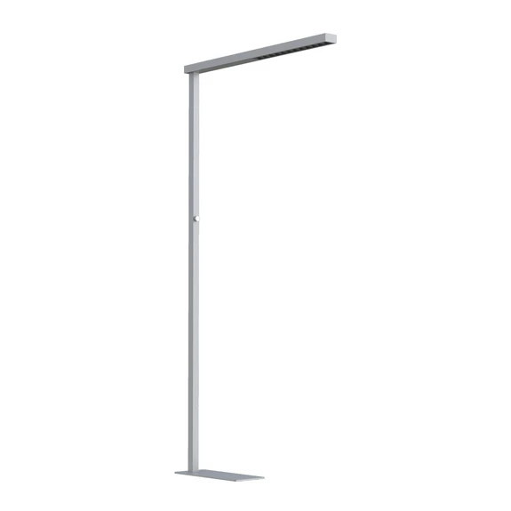 Officium ist eine modern gestaltete Stehleuchte für Einzel- und Doppelarbeitsplätze im Büro. Sie ist mit zwei leistungsstarken LED-Lichtquellen ausgestattet. Dabei strahlt die eine Lichtquelle nach oben und die andere nach unten universalweißes Licht ab. Im Standrohr ist ein Drehdimmer integriert, über den das Licht geschaltet sowie stufenlos gedimmt werden kann. Schaltung und Dimmung erfolgen für beide Lichtquellen stets synchron.