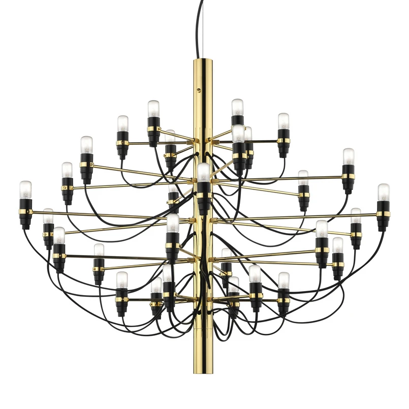 Betrachtet man den Kronleuchter 2097 kommt man beim ersten Blick wahrscheinlich nicht auf die Idee, dass der Entwurf zu diesem leicht futuristisch anmutenden Beleuchtungsobjekt aus dem Jahr 1958 stammt. Viel eher würde man ihn auf das Jahr 2097 - gemäß seines Namens - datieren. Der italienische Ingenieur und Designer Gino Sarfatti (1912 - 1984) hatte mit dieser Reduzierung des prunkvollen, klassischen Kronleuchters aber sicherlich schon die Zukunft im Blick. Die rudimentären Charakteristika eines Lüsters - wie Kronleuchter auch gerne genannt werden - sind noch vorhanden, doch in sehr puristischer Gestalt.