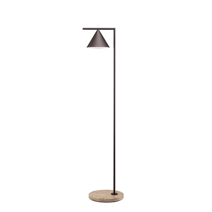 Das schlanke Gestell aus lackiertem Stahl ist auf einem runden, edlen Marmorfuß befestigt und verläuft in eine horizontale Stange, an der der verstellbare Kopf in Kegelform befestigt ist. Dieser lässt sich um bis zu 315° bewegen und bietet dadurch ein hohes Maß an Flexibilität bei der Ausrichtung des Lichtstrahls. Zusätzlich kann die Lichthelligkeit über den integrierten Dimmschalter am Kabel zwischen 30 - 100 % gedimmt werden. Des Weiteren verfügt dieser Schalter über eine Ein/Aus-Funktion. Dank des langen Kabels ist auch eine variable Platzierung der Stehlampe problemlos möglich.
