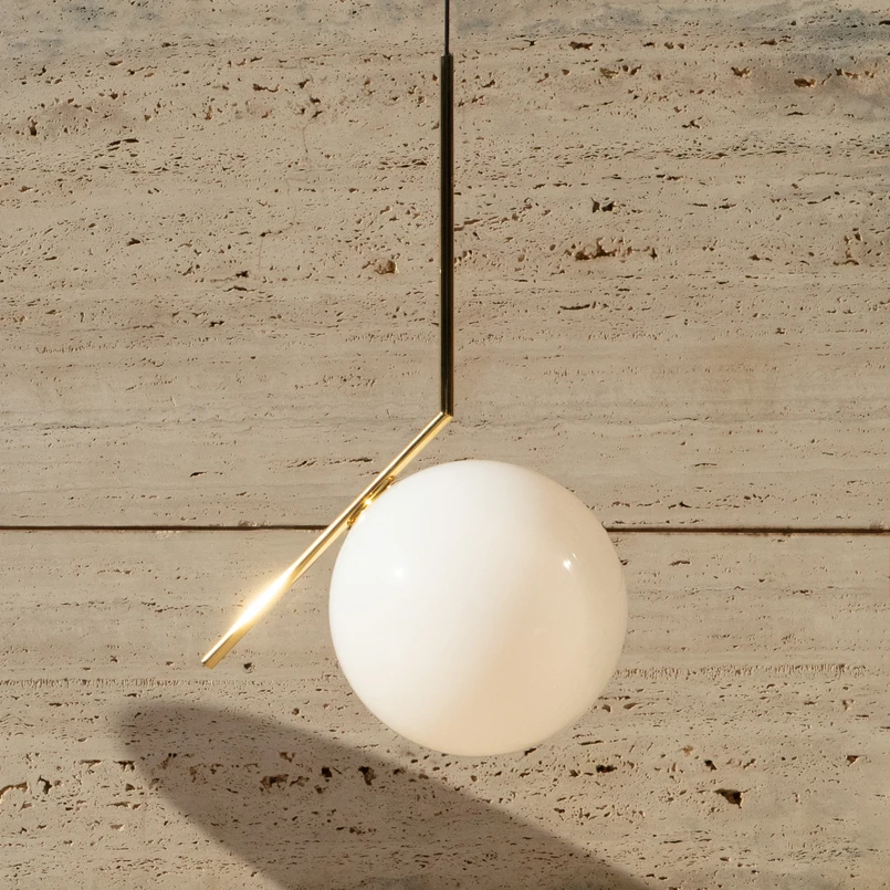 Optisch erweckt IC Lights den Eindruck von Leichtigkeit und Eleganz, wozu auch das abgewinkelte Gestell der Abhängung beiträgt, an der die Glaskugel wie bei einer Jonglage entlangzulaufen scheint. Diese anmutige Designerleuchte wird darüber hinaus auch in Italien gefertigt.
