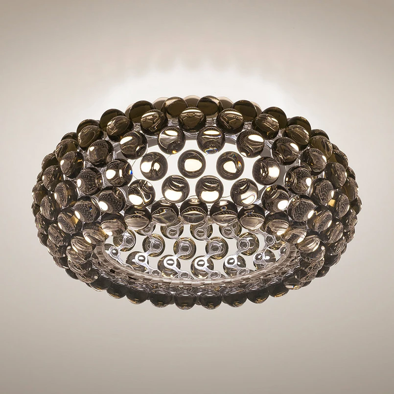 Von der Optik eines Perlenarmbands ließen sich die Designerinnen Patricia Urquiola und Eliana Gerotto bei der Entwicklung des Konzepts zur Leuchtenserie Caboche inspirieren. Zahlreiche durchsichtige PMMA-Perlen umgeben den satinierten Diffusor und brechen das einfallende Licht. So erhält die LED-Deckenleuchte Caboche ihren einzigartigen, funkelnden Charakter. Hiermit wirkt die Deckenleuchte leicht und doch ausdrucksstark - ein eleganter Blickfang für Wohn- und Aufenthaltsräume.