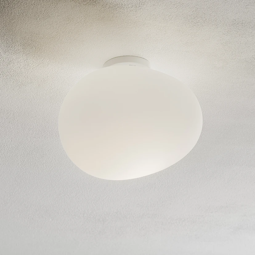 Von der Natur selbst wurden Ludovica + Roberto Palomba 2007 zum Design der Leuchtenfamilie Gregg inspiriert, die sie für die italienische Leuchtenmarke Foscarini entwarfen. Ob man die organische Form der Leuchte nun mit einem von der Flussströmung rund geschliffenen Kieselstein oder doch eher mit dem überdimensionalen Ei eines Fabelwesens assoziiert, das bleibt dem Betrachter selbst überlassen. Die Deckenleuchte Gregg gehört zu den vielseitigsten und variantenreichsten Produktfamilien Foscarinis. Aus mundgeblasenem, säuregeätztem Glas gefertigt, überzeugt Gregg nicht nur mit einer herausragenden Qualität und bester Verarbeitung, sondern auch mit einer absolut angenehmen Lichtverteilung. Das satinierte Glas schirmt die im Inneren des Schirms platzierte Lichtquelle zu allen Seiten ab und transportiert das Licht weich und blendfrei in die Umgebung.