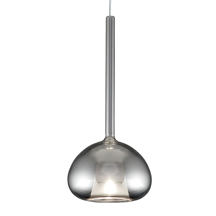 Chromfarbene Hängeleuchte Beba mit ausgefallenem Glasschirm