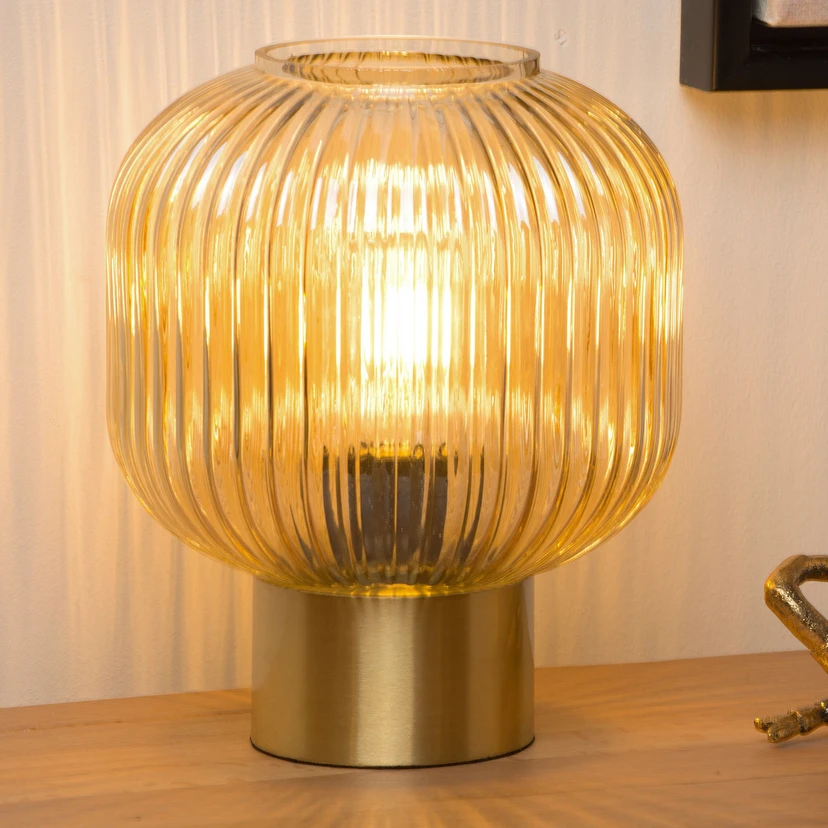 Glas-Tischleuchte Maloto, amber/ gold, Ø 20 cm, E27