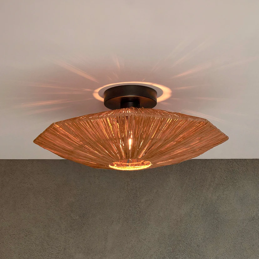 Die Deckenleuchte Panama ist aus natürlichem Raffia gefertigt, einem neuartigen Material, das für seine Nachhaltigkeit bekannt ist, denn es wächst schnell und kann dadurch früh wieder geerntet werden. Dabei wird der Baum nicht beschädigt und kann weiter wachsen und produzieren. Die luftige, geflochtene Struktur lässt das Licht in atemberaubenden Mustern durch und erzeugt ein faszinierendes Lichtbild.