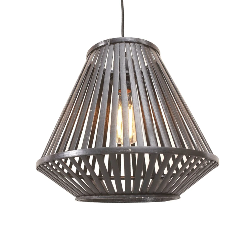 Mit der Hängeleuchte Merapi lässt sich die Umgebung angenehm beleuchten. Sie eignet sich unter anderem für die Nutzung im Wohnbereich, im Ess- sowie im Schlafzimmer. Der Schirm besteht aus Bambus und wird von Hand gefertigt, sodass jede Pendellampe ein Unikat ist. Das Licht wird durch den teils offen gestalteten Schirm blendfrei an die Umgebung gestrahlt und lässt schöne Muster im Raum entstehen. Mit einem externen Phasendimmer sowie einem passenden Leuchtmittel lässt sich zudem die Helligkeit regulieren.