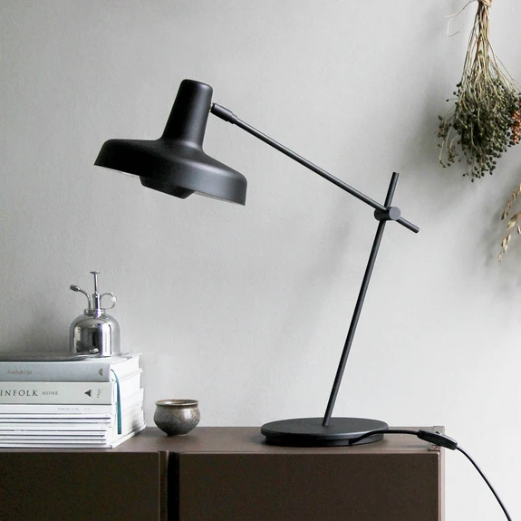 Vielseitig kombinierbar und äußerst flexibel präsentiert sich die Tischleuchte Arigato, für deren Entwurf und Produktion das kroatische Unternehmen GRUPA verantwortlich zeichnet. Die Tischlampe setzt sich aus einem runden Standfuß, einem ein zwei Abschnitte gegliederten Gestell aus Stahl und einem runden Schirm aus Aluminium zusammen. Gelenke an den Verbindungspunkten ermöglichen eine freie Ausrichtung und Positionierung des Schirms. Letzterer ist mit einer Blende zur Optimierung des Sehkomforts und einer weiß lackierten Innenseite für eine verlustarme Lichtabgabe versehen.