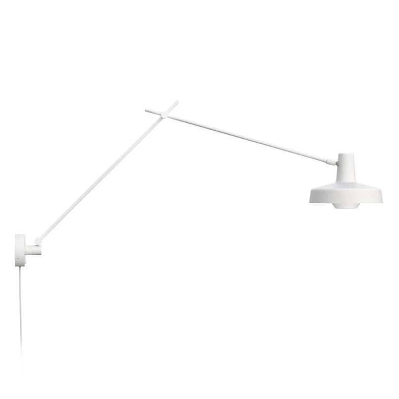 Die vom kroatischen Unternehmen GRUPA entworfene und produzierte Wandleuchte Arigato ist ein Meister der Vielseitigkeit hinsichtlich Kombinierbarkeit und Justierbarkeit. An der runden Wandhalterung ist ein in zwei Abschnitte gegliederter Arm aus Stahl angebracht, der einen runden Schirm aus Aluminium hält. Alle Abschnitte sind mit Gelenken verbunden, sodass die Orientierung und Position des Schirms frei angepasst werden kann. Das Leuchtmittel wird hinter einer Blende eingesetzt, was den Sehkomfort steigert. Die weiß lackierte Innenseite des Schirms gewährleistet eine effiziente Lichtabstrahlung.