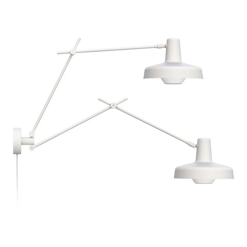 Absolut vielseitig kombinierbar ist die Gestaltung der Wandleuchte Arigato, für deren Entwurf und Herstellung das kroatische Unternehmen GRUPA verantwortlich ist. Die beiden schlanken Stahlarme sind in je zwei Abschnitte gegliedert und halten je einen runden Schirm aus Aluminium. Hier findet je eine Lampe hinter einer Blende Platz, sodass das direkte Licht abgeschirmt und ein optimaler Sehkomfort erzielt wird. Die weiß lackierte Innenseite bewirkt gleichzeitig eine effektive Abstrahlung des Lichts. Die Wandlampe Arigato macht nicht nur im Wohnzimmer eine gute Figur, sondern überzeugt dank ihrer Flexibilität auch im Arbeitszimmer. Hierzu sind die Abschnitte der Leuchte mit Gelenken verbunden, sodass beispielsweise ein Schirm zu indirekten Beleuchtung in Richtung der Wand orientiert werden kann und der andere zur Tischbeleuchtung dient.