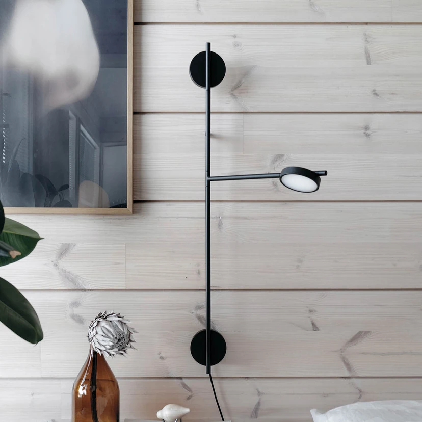 Flexibel, modern und elegant präsentiert sich die vom kroatischen Unternehmen GRUPA entworfene und produzierte Wandleuchte Igram. Eine runde Wandhalterung trägt einen schlanken, nach oben gerichteten Arm aus Stahl, an dem auf etwa halber Höhe ein horizontaler Arm schwenkbar angebracht ist. Beide Arme halten je einen runden Schirm aus Aluminium in der Form der Wandhalterung. Die Schirme sind horizontal bzw. vertikal rotierbar, sodass das warmweiße Licht der hinter PMMA-Abdeckungen integrierten LEDs zur direkten oder indirekten Beleuchtung über Decke und Wand genutzt werden kann.