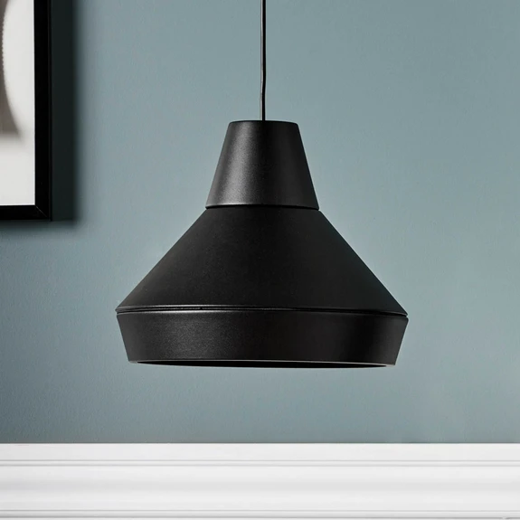Mit ihrem kreativen, individuellen Design bereichert die Hängeleuchte Ili Ili Wohnräume wie Restaurant und Bars. Mehrere Aluminiumelemente in unterschiedlicher Größe, Farbe und Formgebung ergänzen sich bei dieser Leuchtenserie des kroatischen Unternehmens GRUPA zu topaktuellen Lichtspendern. Die Ausführung Cats Hat zeichnet sich durch die Kombination dreier Abschnitte in jeweils eigener Form aus: Ein oberer, schmaler und ein mittlerer, breiter Kegelstumpf sowie ein kürzerer, unten zulaufender Abschluss am Lichtaustritt bilden den Schirm.