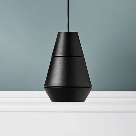 Als stylischer Lichtspender über dem Wohn- oder Esszimmertisch, ebenso wie über Tischen und Tresen in Restaurants und Bars, ermöglicht die Hängeleuchte Ili Ili des kroatischen Unternehmens GRUPA eine ansprechende direkte Beleuchtung. Das kreative Konzept der Leuchtenserie stellt die Kombination von Aluminiumelementen in unterschiedlichen Größen, Formen und Farben dar. Die Ausführung La Lava gliedert sich in zwei größere obere Abschnitte, die einen Kegel bilden; unten schließt sich ein schmaleres Element an, das einen nach unten zulaufenden Abschluss bildet.