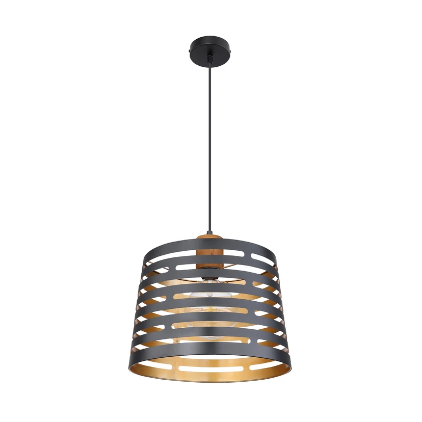 Die Hängelampe Ablona vereint modernes Design mit hochwertigen Materialien wie Metall und Holz, um eine stilvolle Beleuchtungslösung zu bieten. Die Kombination aus schwarzem Matt und goldfarbenen Akzenten verleiht jedem Raum eine elegante Note. Diese Lampe ist ideal für den Einsatz in Wohnzimmern, Esszimmern, Küchen und Flurbereichen und fügt sich nahtlos in verschiedene Einrichtungsstile ein.