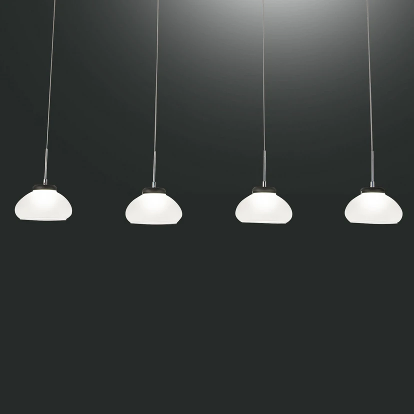 Dimmbare LED-Hängeleuchte Arabella mit vier aufgereihten Glasschirmen