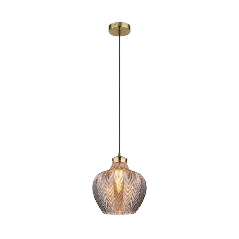 Die Hängelampe Jessica vereint stilvolles Design mit funktionaler Vielseitigkeit. Gefertigt aus hochwertigem Glas und Metall, präsentiert sich die Lampe in einer edlen Kombination aus rauchfarbenem und goldfarbenem Finish. Diese harmonische Farbgebung verleiht jedem Raum eine besondere Atmosphäre und fügt sich nahtlos in verschiedene Einrichtungsstile ein.