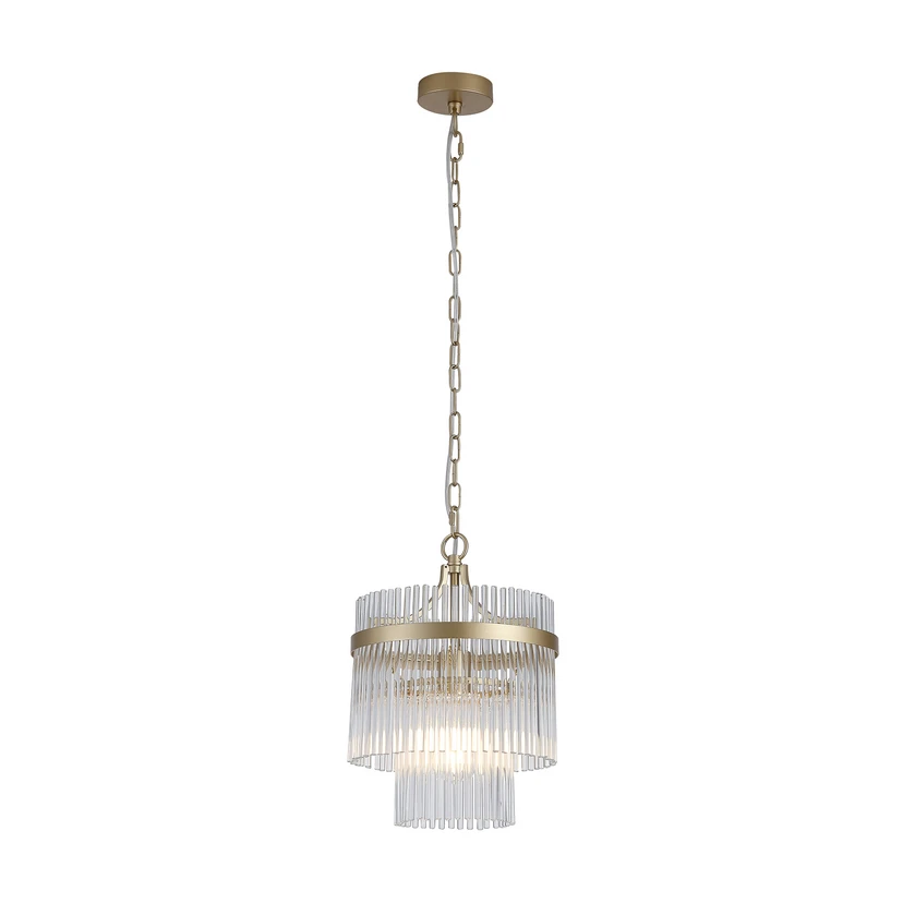 Die Hängelampe Lara vereint stilvolle Ästhetik mit funktionaler Beleuchtung und ist damit die ideale Ergänzung für Wohn- und Esszimmer. Gefertigt aus klarem Glas und Metall mit einem glanzvollen Goldton, verleiht sie jedem Raum eine besondere Note. Die sorgfältige Materialauswahl sorgt für eine langlebige und ansprechende Beleuchtungslösung, die sich harmonisch in verschiedene Einrichtungsstile einfügt.