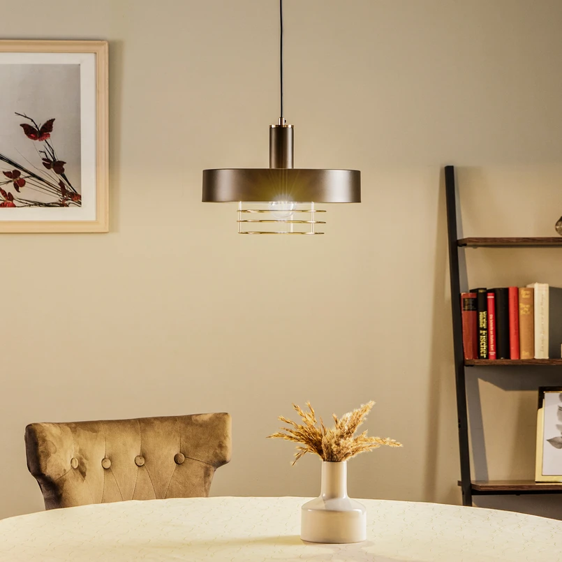 Die Hängeleuchte Beryt Pro aus hochwertigem Metall vereint stilvolle Eleganz mit funktionaler Vielseitigkeit. Die Kombination aus schwarzem und goldenem Finish verleiht jedem Raum, sei es Wohnzimmer, Küche, Flurbereich oder Esszimmer, eine luxuriöse Note. Gefertigt in Europa, steht diese Leuchte für Qualität und anspruchsvolles Design, das sich harmonisch in verschiedene Einrichtungsstile integrieren lässt.