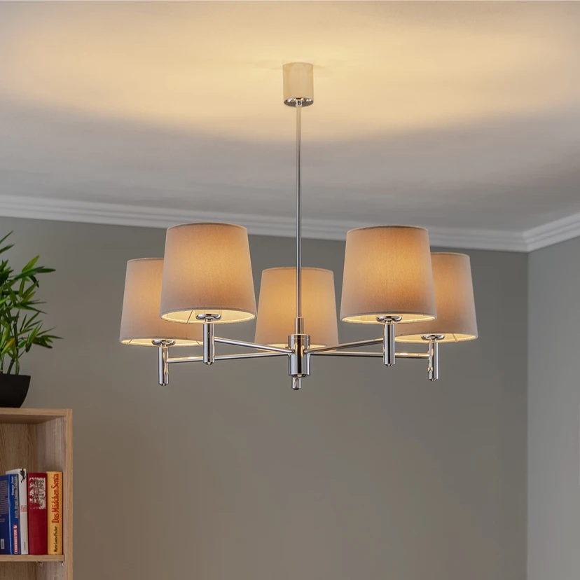 Hängeleuchte Bono, fünfflammig, chrom/grau